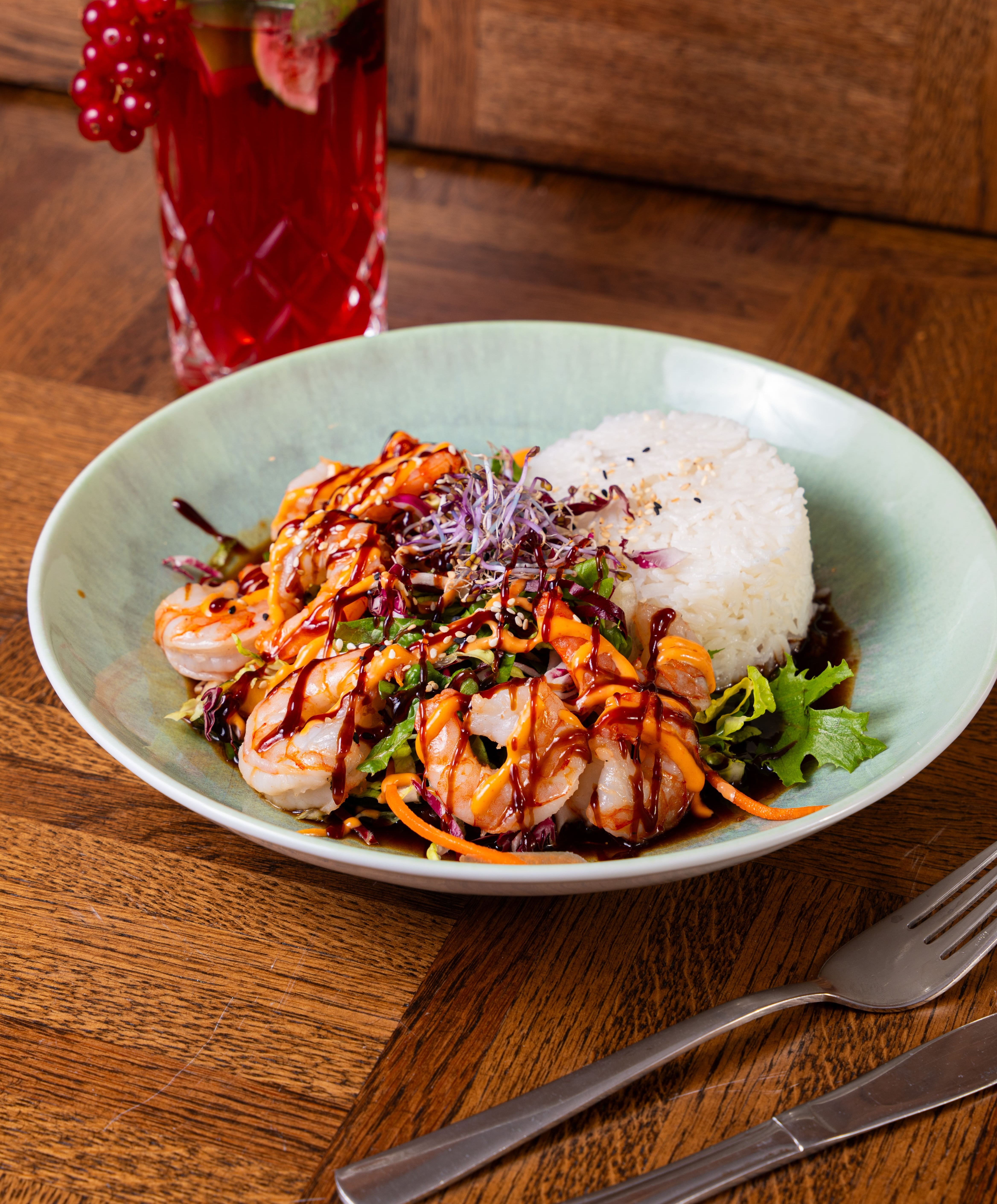 eine harmonisch abgestimmte Bowl mit jungenMungbohnen, frischer Mango, knackiger Gurke,cremiger Avocado und zart gegrilltem Lachs,abgerundet mit einer hausgemachten Sauce