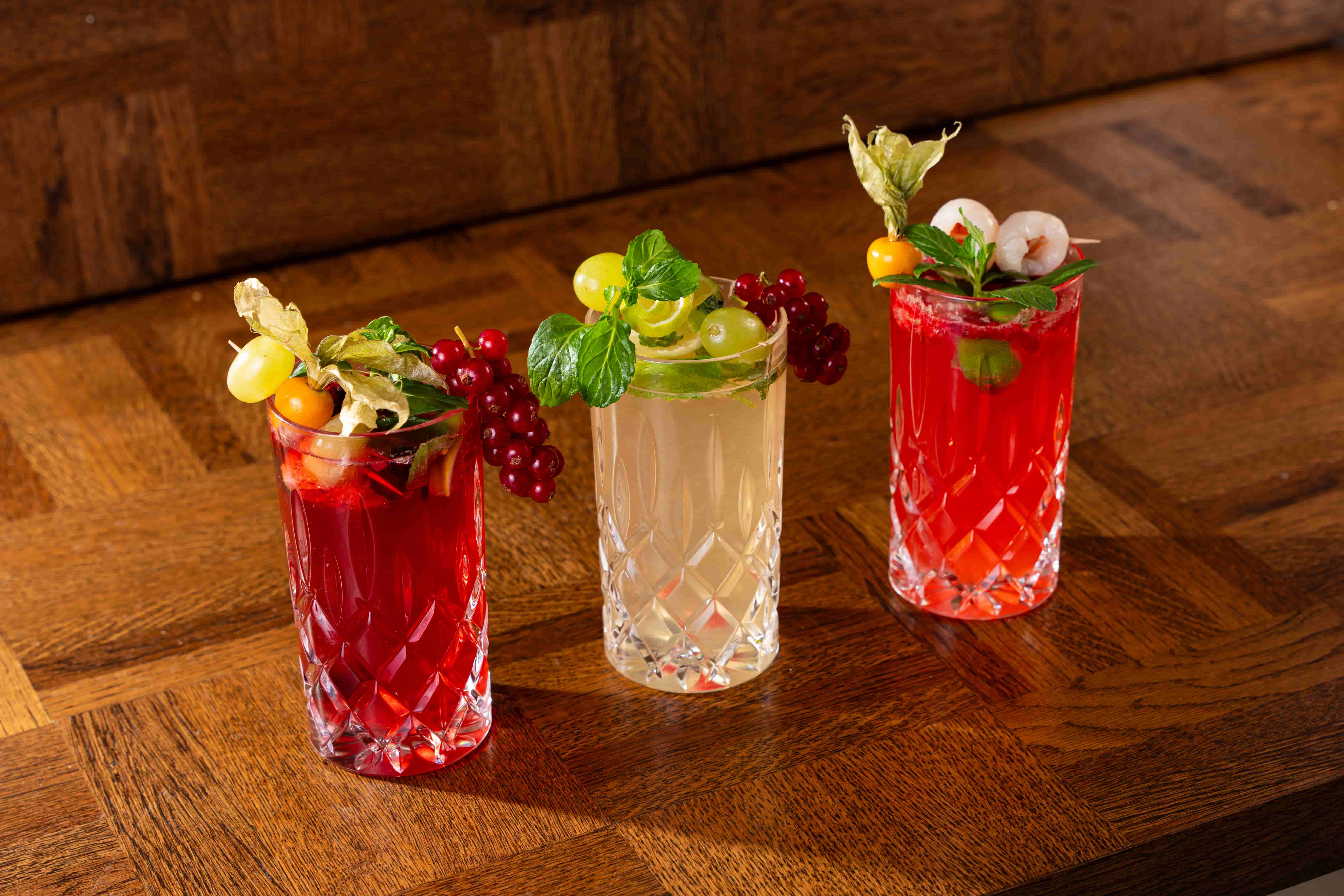 Waldfrüchte, Erdbeersiup, Limetten, Minze, Traubensaft, Soda